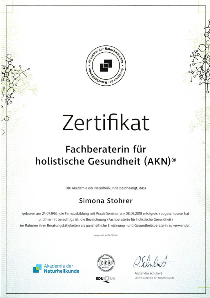 MEINE ZERTIFIKATE ALS HOLISTISCHE ERNÄHRUNGSBERATERIN